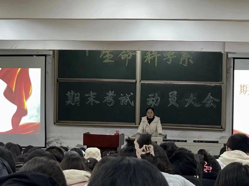 为进一步落实立德树人根本任务,加强新生考风考纪,构建诚信校园,12月26日下午15:30,生命科学系在弘毅楼1-C101举行23级新生期末考试动员大会。出席本次动员大会的有生科系主任冯彩平老师、副主任王莉王老师以及23级新生班主任。