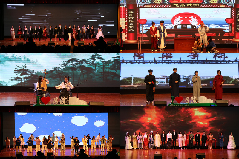 晚会现场,精彩的节目轮番上演。《舞娘》震撼了全场,动感十足的舞蹈瞬间点燃了现场的气氛,她们身姿矫健,舞步灵动,用舞蹈诠释着对青春的赞美和热爱。幽默风趣的小品表演《三句半》,引得全场阵阵笑声,同时也传达了积极向上的价值观。新生带来的《弹唱串烧》《麦芒》《像你这样的朋友》等歌曲,歌声清澈悦耳,仿佛天籁之音,让同学们沉浸在音乐的海洋中。特别是由樊玮芸老师和学生韩斐然带来的《战马奔腾+兰亭序》二胡和琵琶演奏,胡和琵琶声一响,第一个音符就技惊四座!周围的空气也都充满了斗志,太精彩了!让同学们看到了老师别样的风采,打破了传统的师生界限,拉近了彼此的距离。小品《铡美案》将此次晚会推向了高潮,全程风波不断,笑的肚子疼,在座的同学们,大家纷纷挥舞着荧光棒,现场气氛热烈而欢快。这一刻,晚会璀璨,情谊绵延,师生共同感受着这场晚会带来的独特魅力。