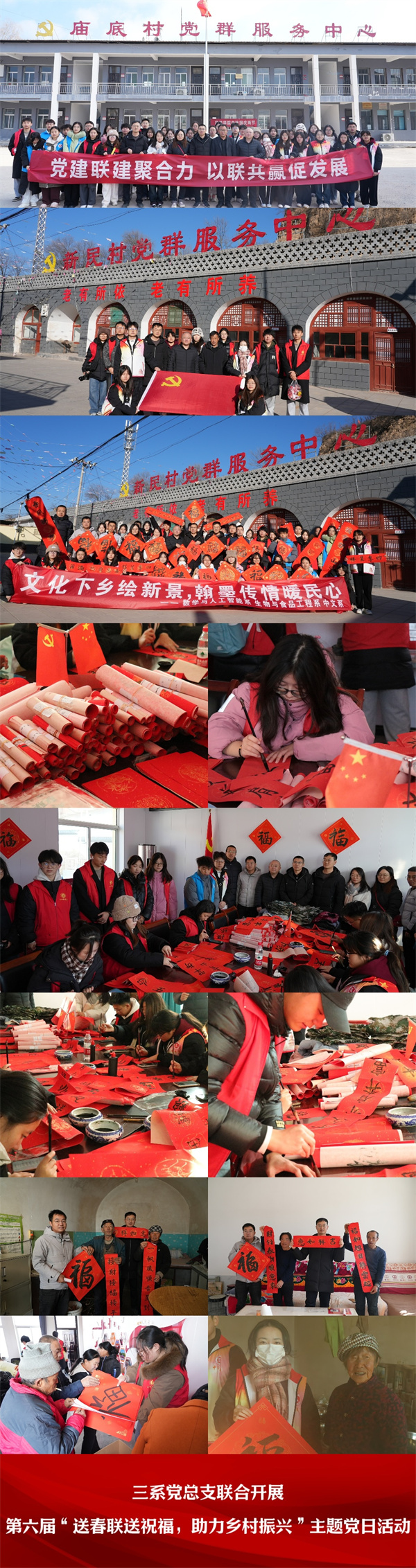 为进一步学习贯彻党的二十届三中全会精神,汇聚文化力量,弘扬传统文化,助力乡村振兴提质增效,让文化惠民政策深入基层,让更多乡村群众享受文化福利,12月7日,太阳集团tyc151cc、数学与人工智能系和中文系负责人与tyc151cc太阳派驻方山县北武当镇庙底村、新民村工作队联合开展第六届“送春联送祝福,助力乡村振兴”主题党日活动。tyc151cc太阳驻庙底村、新民村工作队队员、村支两委班子成员以及各系学生党支部书记、学生党员、入党积极分子以及书法社成员等50余人参加了此次活动。