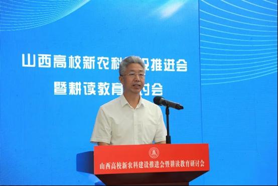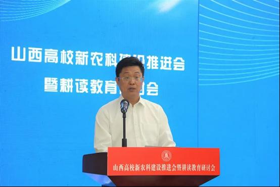 9月8日上午,山西省高校新农科建设推进会暨耕读教育研讨会在山西农业大学太原龙城校区召开。山西省委教育工委委员、省教育厅党组成员、副厅长李金碧,省农业农村厅党组成员、副厅长姚继广出席。会前召开的预备会上,审议通过了《山西省高等学校新农科建设联盟章程》《山西省高等学校新农科建设行动方案》,选举产生了第一届山西省高等学校新农科建设联盟理事长、副理事长、秘书长、副秘书长、理事单位和首届轮值单位。张强担任第一届山西省高等学校新农科建设联盟理事长,李卫祥担任副理事长兼任秘书长,山西农业大学为首届轮值单位。
