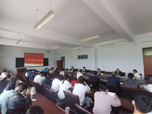 会上,冯主任带领全体人员集中学习了《信访工作条例》中信访工作应当遵循的五大原则、信访事项的提出和受理以及信访的程序等方面的内容,让老师们初步了解《条例》的基本内容,从思想上要重视学习,在行动上要深入学习,扎实落实《条例》内容。