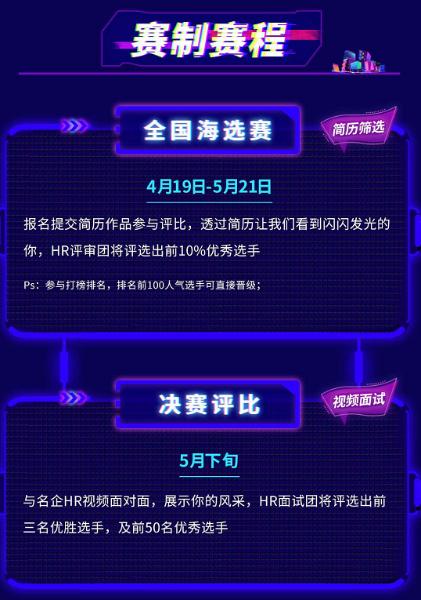 这次比赛,将带大家经历最真实的职场历练,从简历1V1指导到与资深 HR视频面对面,帮同学们在提前了解职场规则,抢占校招先机!