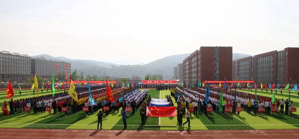 7日上午8时,我校第五届春季运动会开幕式正式开始。伴随着激昂奋进的入场音乐,仪仗队、裁判员和各系代表队依次入场,安全帽、民国风服装等充满各系特色的方队展现了各系积极向上的精神风貌。吕梁军民融合协同创新研究院无人机、我校航模队为大家献上了精彩的飞行表演;武术团体表演《中华雄风》,彰显了中华民族自强不息的精神、勇于拼搏的意志、厚德载物的胸襟、和谐共处的气度;由1008名女同学组成的体操队,脚踏着欢快的节奏,为大家献上了大型团体操《同心逐梦》,激励师生超越自我、放飞梦想,为校园体育运动,为学校改革发展,为我们古老而又年轻的祖国,圆一个兴旺之梦,圆一个繁荣之梦,圆一个腾飞之梦!
