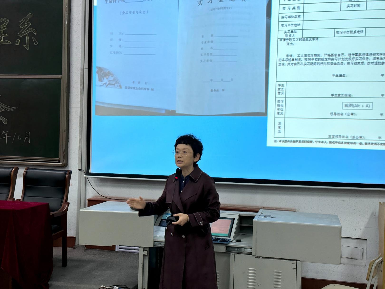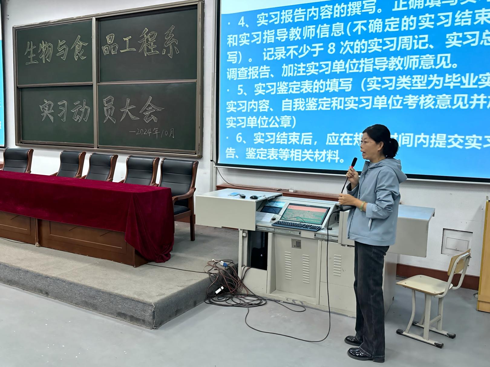 为助力2025届毕业生更好地开启毕业实习之旅,强化同学们对实习工作的认知与重视,确保实习工作有序推进,2024年10月16日,太阳集团tyc151cc于道德讲堂组织召开食安、食科专业2025届毕业实习动员大会。系主任冯彩平、副主任王莉、辅导员苗艳艳、专业负责人王瑞参加本次会议。会议由苗艳艳主持。