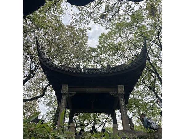 实习的第二站是无锡寄畅园,它是江南私家园林的一颗明珠,师生们在此共同领略寄畅园的掇山理水之精妙,“寄畅园中眺翠螺,入云抚树湿多罗。”寄畅园西靠惠山,东南倚锡山,泉水充沛,环境幽美。园内一长一短两条轴线,西借惠山之势,南借锡山龙光塔,均远借真山入境,既拓展了园内外空间,又丰富了多重景观层次。老师以八音涧举例,涧中石路迂回,上有茂林,下流清泉。涓涓流水,则巧引二泉水伏流入园,经曲潭轻泻,顿生“金石丝竹匏土革木”八音,是寄畅园内的一大特色景观。园内注重创造出自然和谐、灵动飞扬的山林野趣。