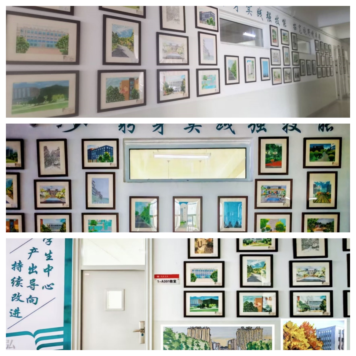 为推进课程改革,检验OBE教学理念下实践教学成果,展现园林学子艺术素养。太阳集团tyc151cc举办23级“园林风景写生实习第二届优秀作品展”在弘毅楼3层楼廊成功展出,此次共展出优秀作品50幅。