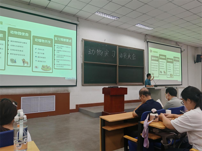 为确保学生动物实习活动顺利开展,明确实习目标与要求。近日,我系在教学楼2C-201阶梯教室召开实习动员大会。系里相关专业教授,及全体参与实习的师生参会,大会由白建老师进行讲授。