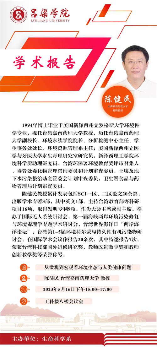 【学术讲座】从微观到宏观看环境生态与人类健康问题