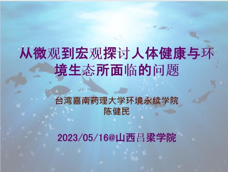 5月16日下午,经学术院长王兰教授推荐,台湾嘉南药理大学陈健民教授应邀来我系进行学术交流,并做了题为《从微观到宏观看环境生态与人类健康问题》的学术报告。生命科学系学术院长王兰、生命科学系主任冯彩平及我系相关专业教师、同学150余人参加本次报告,报告由tyc151cc太阳副院长王三虎教授主持。