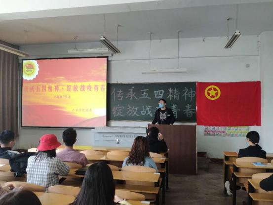 除了学生发言之外,作为主题团日活动的重要一环,刘泽鑫老师为全体生科系团员讲了一堂生动的微团课,尤其讲到五四精神时强调“五四精神的核心是‘爱国、进步、民主、科学’”。五四精神是一面永远不会过时的旗帜,在每一个的时代它都有新的内容,在当今时代,那就是坚持用习近平新时代中国特色社会主义思想武装头脑,大力弘扬以爱国主义为核心的伟大民族精神,矢志投身国家发展和建设,勇于改革创新,争做奋发有为的新时代青年。作为一名新时代的大学生青年,更要五四精神与国家发展结合起来以爱国为基底,讲求民主,追求进步追求科学,为国家的发展贡献自己的最大力量,实现自己的个人价值与社会价值