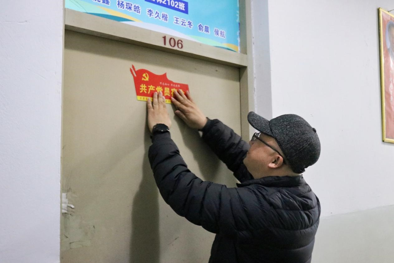 挂牌仪式结束后,于书记和学生党支部书记来到文华苑学生宿舍,对党员宿舍进行挂牌,并对宿舍同学表示关切。学生党员纷纷表示,此次党员宿舍挂牌仪式,既是鼓励,也是鞭策,让自身更加敢于亮明身份,接受监督,牢记初心使命,以身作则,以实际行动带动宿舍、班级良好的学风、班风的形成,积极参与“我为同学办实事”活动中去。