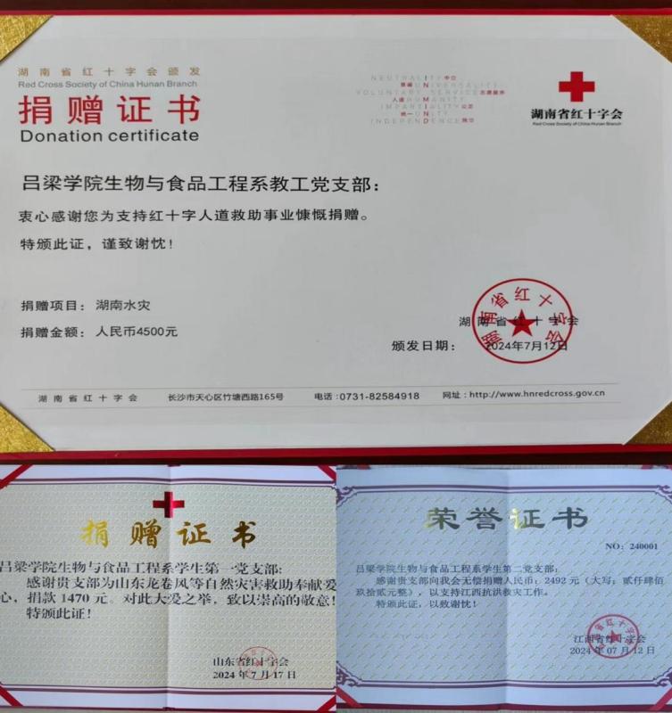 本次募捐活动以尊重党员意愿、鼓励量力而行为原则,倡导用点滴爱心集聚起支援防汛救灾的强大力量,支部师生党员、入党积极分子以及积极向党组织靠拢的学生们积极响应,纷纷自愿捐款,短短两天时间,筹集善款8642元,已全部捐至湖南、山东、江西红十字会用于防汛救灾。学生党员一致表示,一方有难,八方支援,我们虽无法前往救灾现场,但也要贡献自己的绵薄之力,一起为防汛赈灾贡献自己的力量。作为在党的关怀下成长起来的青年学生,作为社会中最积极、最活跃、最有生气的一部分力量,当祖国和人民需要我们的时候,我们应凝聚起强大的青春力量,义无反顾地投身到支援抗洪救灾的队伍中,让灾害见证我们报效祖国的精神,让实践淬炼我们服务人民的品质。