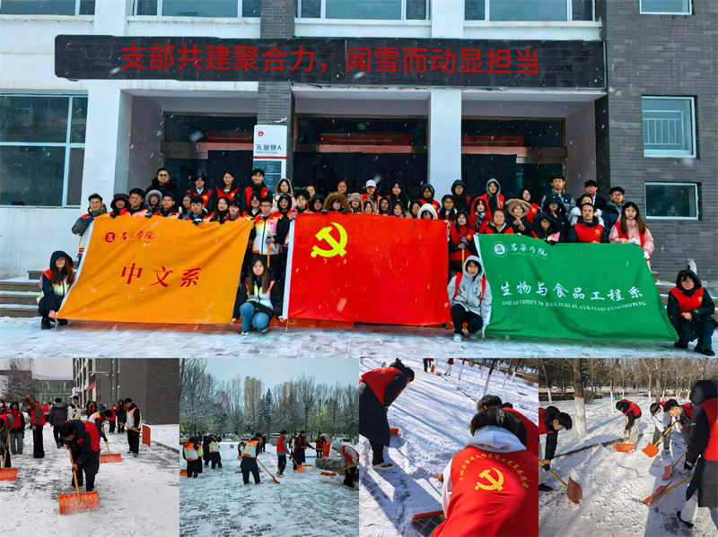 “行动是最好的融雪剂”,同学们响应党总支号召,拿着清雪工具,根据事先安排好的工作区域,有条不紊地清理着路面以及教学楼台阶上的积雪。虽然天气寒冷,但这并没有影响扫雪的热情和工作效率,大家齐心协力、相互配合,在校园内筑成一道靓丽的风景线。