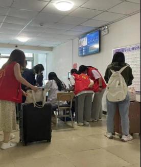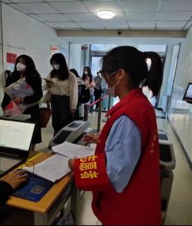 返校当天,党员先锋队身披红色志愿马甲,早早来到各自的工作地点集合,开始了全天的志愿服务。“同学,请这边走”“同学,请出示健康通行码”“同学,需要帮忙吗”。他们或为学生搬运行李、或进行文明引导、或协助值班老师登记信息、安排住宿隔离、发放生活物资,他们激情饱满、不知疲倦、主动担当,用满腔的热血和温暖的笑颜