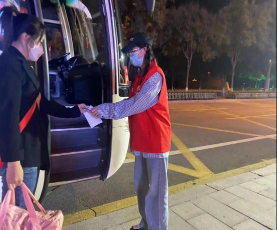 学生第一党支部党员杨钰,参加火车站接站志愿者活动,主要工作是:在火车站协助排查登记、体温测量、宣传相关防疫知识等工作。在学校她积极上进,在党和国家需要的时候,她义不容辞冲在最前线,参与这场抗“疫”战争中。她说:“这是作为一名党员的使命与担当!在当前防控抗疫的严峻形势下,我们一定不能宅在家里做旁观者,应该充分发挥党员的先锋模范作用,承担起一份社会责任。本着这样的初心,我申请加入了疫情防控志愿者队伍。