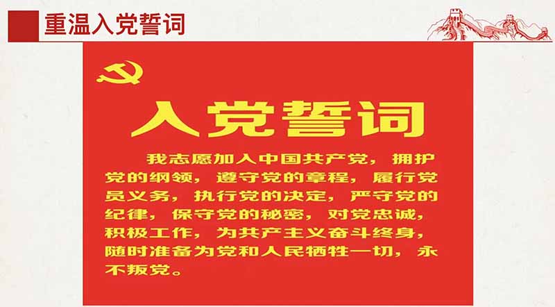 活动结束之际,党小组组长李珂带领全体成员重温入党誓词,全体成员高举右手,握拳过肩,庄严宣誓,一句句铿锵有力的声音在耳边响起,体现出的是一份忠诚承诺、一份责任担当,是全体共产党员共同的行为准则。
