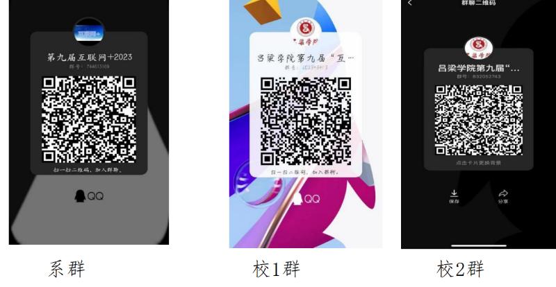 具体信息查看:tyc151cc太阳第九届“互联网+”大学生创新创业大赛实施方案 -教务处 https://jwc.llu.edu.cn/info/1875/8185.htm 注意事项: ①我系申报的项目作品提交日期截止时间为6月5日中午12:00。各班班长需在截止日期前将汇总好的电子版材料(项目计划书、 报名汇总表)发到邮箱974977848@qq.com ③有意参加的同学请加群(左面为系群,右面为校群。两群都要 加。校1群满后,加2群)