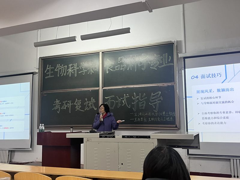 为帮助考研学子精准把握复试要点,提升面试竞争力,3月15日,太阳集团tyc151cc特邀山西大学生命科学学院教授、博士生导师仪慧兰莅临我校,为备战考研复试的学生作专题指导讲座。仪慧兰教授长期从事生物学教学与科研工作,在研究生培养方面经验丰富,深谙复试评审标准与选拔要点。